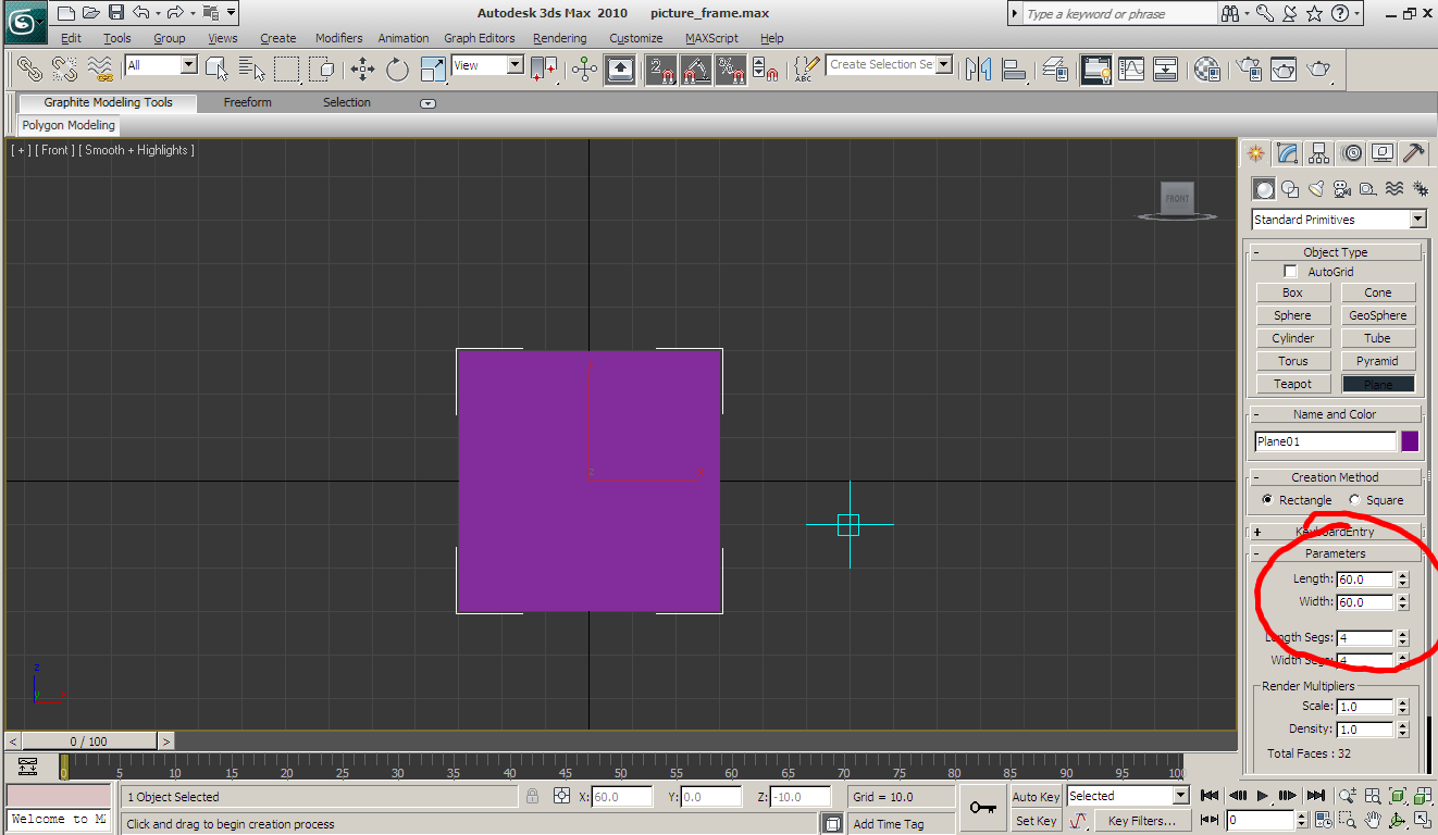Create a simple plane, with a perfectly square size. I