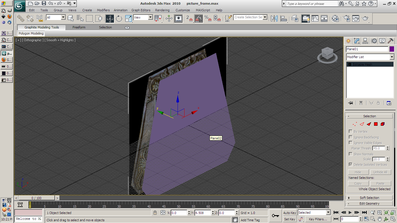 I then applied the picture frame image to this plane, and