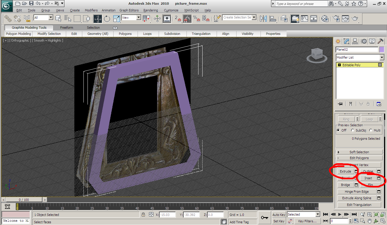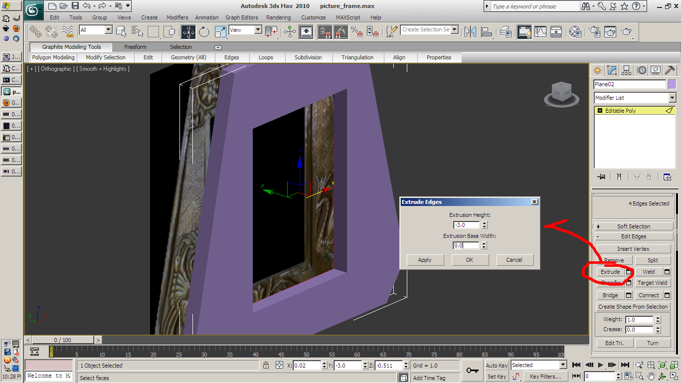 frame itself. I QuickSlice it near the bottom and move the vertices