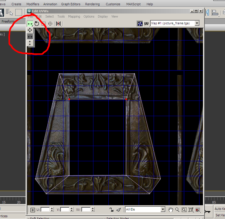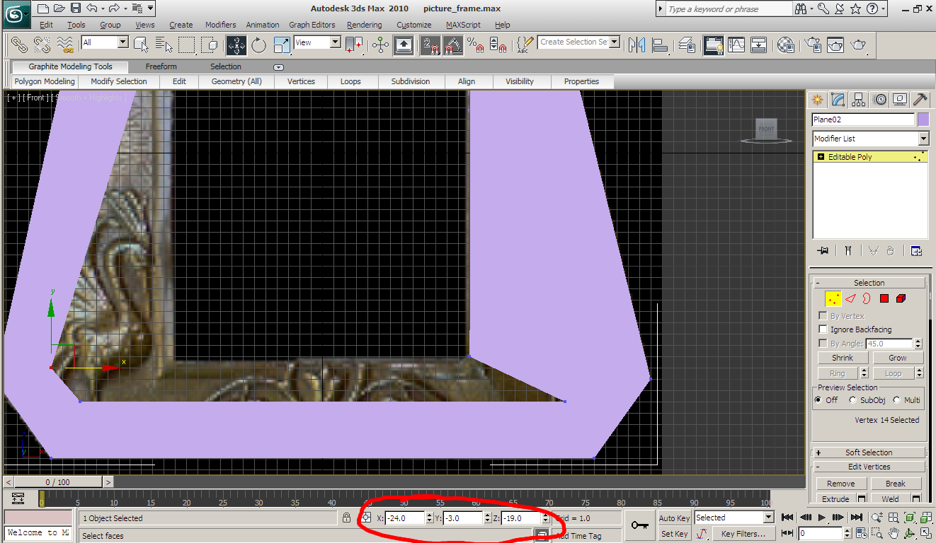 I move the vertices to line up with the hole in the center of the frame.