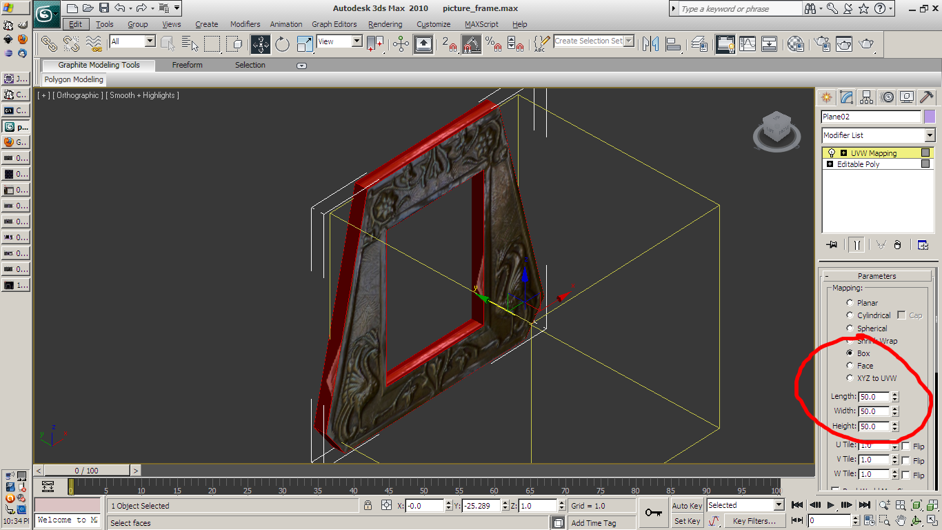 I take my frame material and apply it to my actual frame model, and use