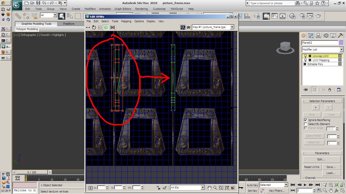 I use UVW Unwrap and move the texture coordinates to align with the actual frame better.
