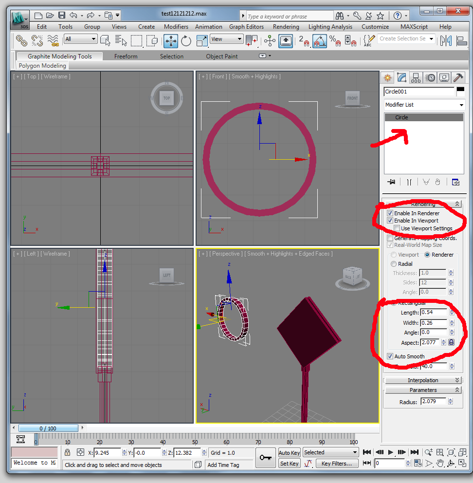 The other sign can be created through deft use of the extrude and connect tools (you can start with part of the bottom bar and extrude to follow the form of the sign). You can use a reference plane based off of the 'parking1' image if you wish. You will probably want to use the symmetry modifier mentioned in last week's assignment. When making the owl sign at the top, it is useful to know how to make an arc. To do this, go to create-> splines -> circle (or arc). Click on this spline and expand the 'rendering' submenu under its properties. Check 'enable in viewport' and change the setting 'radial' to 'rectangular.' This causes the spline to be shown as a blocky tube. When you are done modeling the signs, UVW map them using crosswalk_texture and parking_texture so that they look like the reference images.