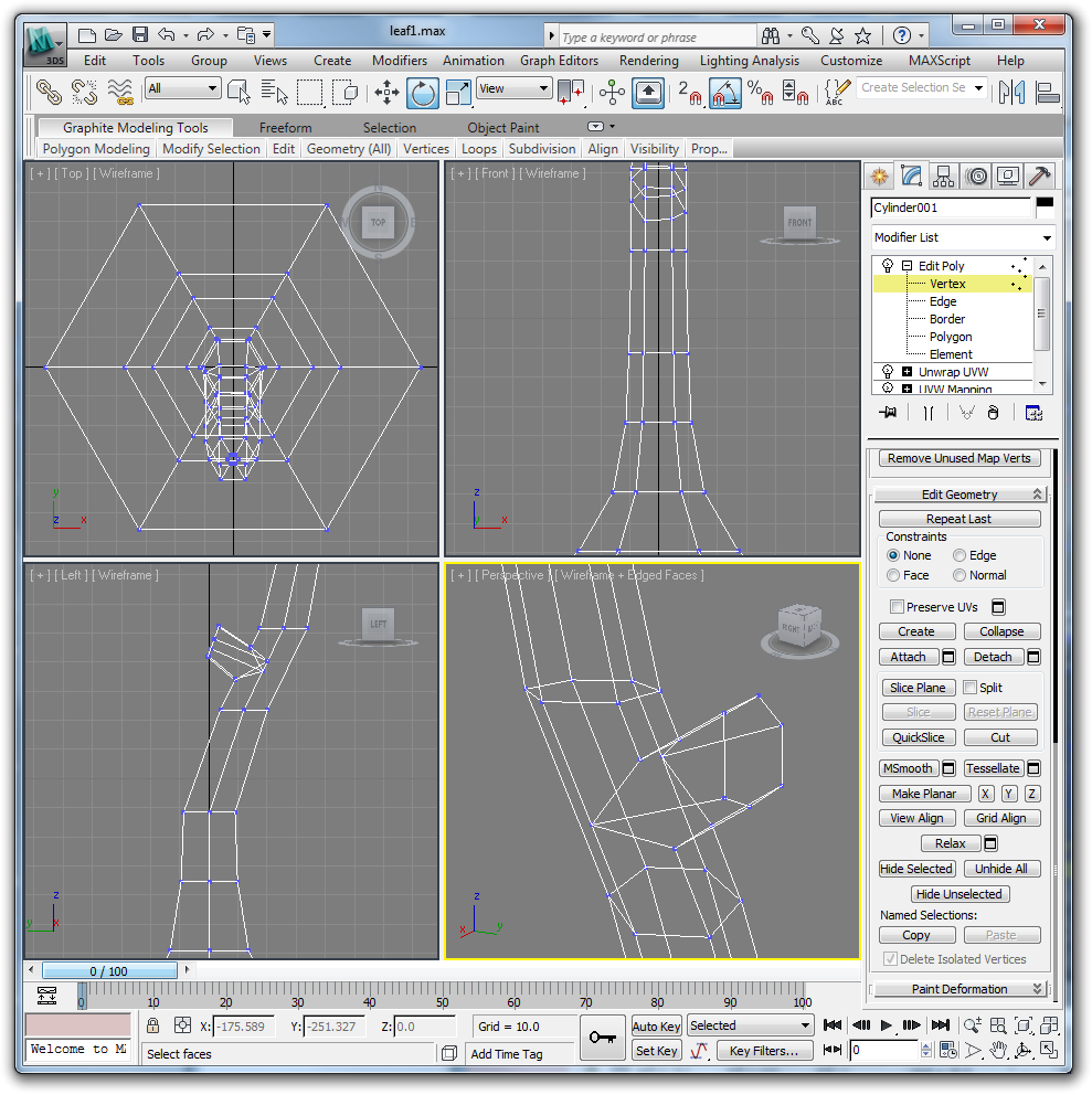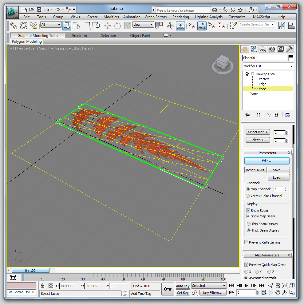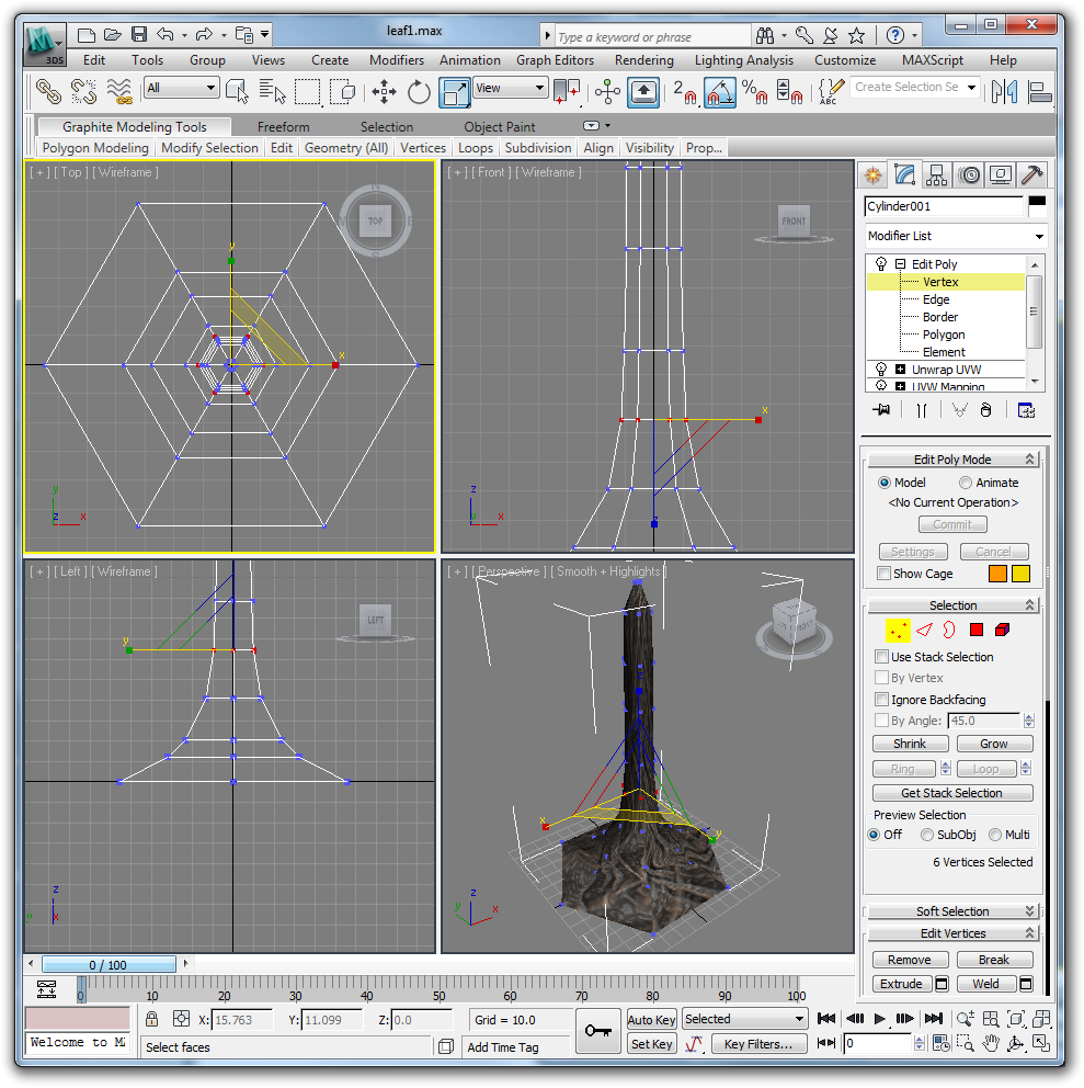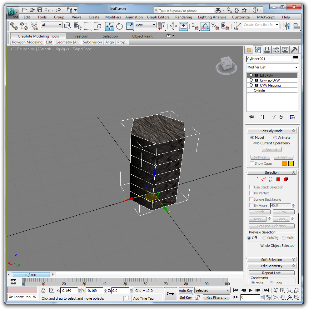 We do this now because doing it after we have added branches will lead to a bit of a mess. Use a cylindrical UVW map modifier and a planer unwrap uvw on the base and cap.