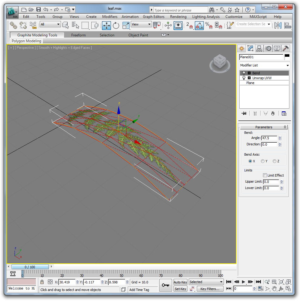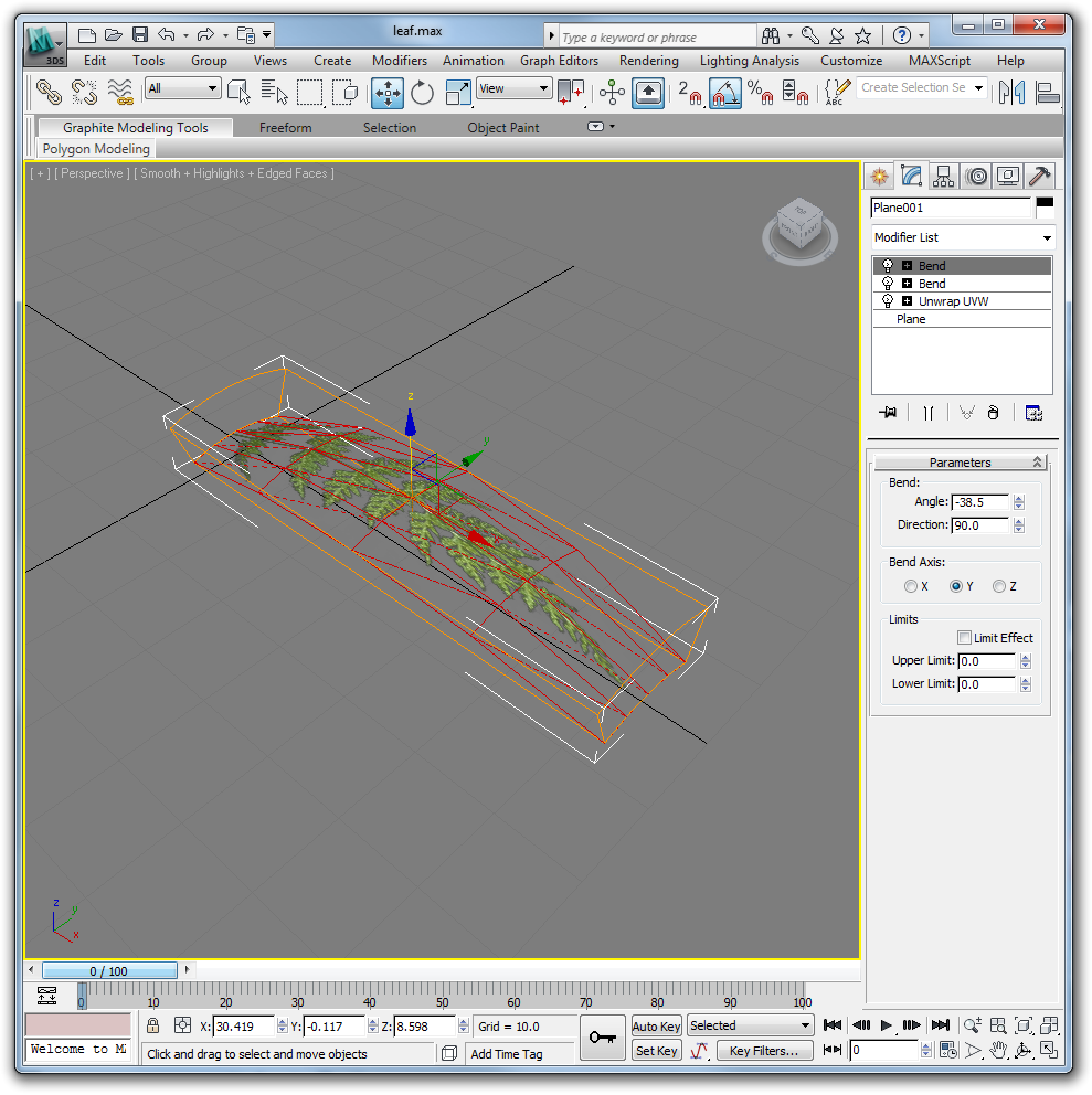 Apply a second bend modifier as shown.