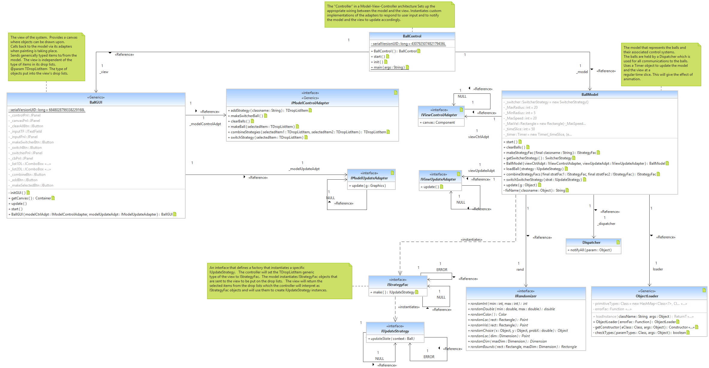 UML Diagram of the Model-View-Controller Architecture of the Ballworld System: