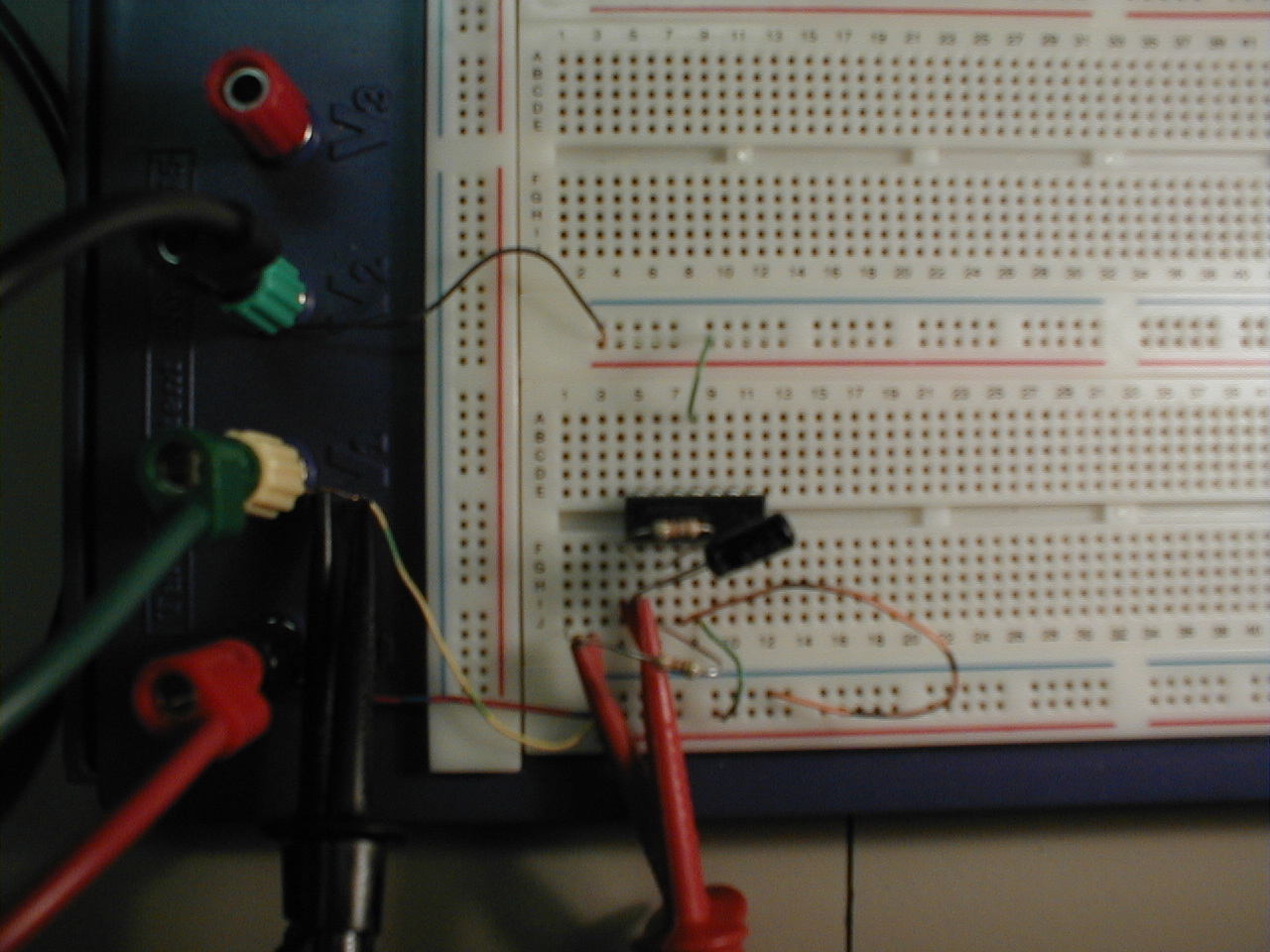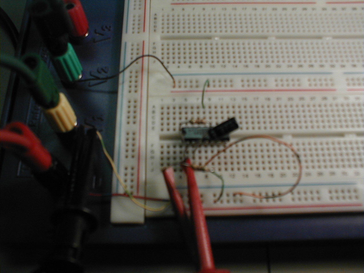 To give those not familiar with analog circuits (or maybe its just been a really long time) an idea of what we wired together we have included some pictures of our breadboard with our first order lowpass filters.