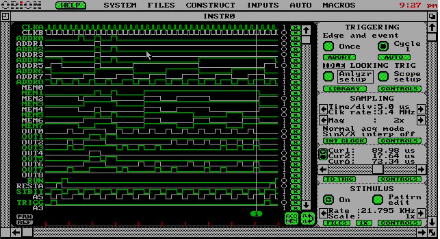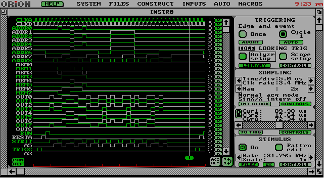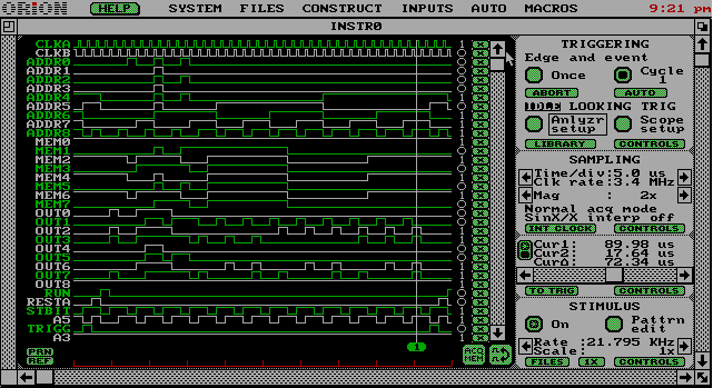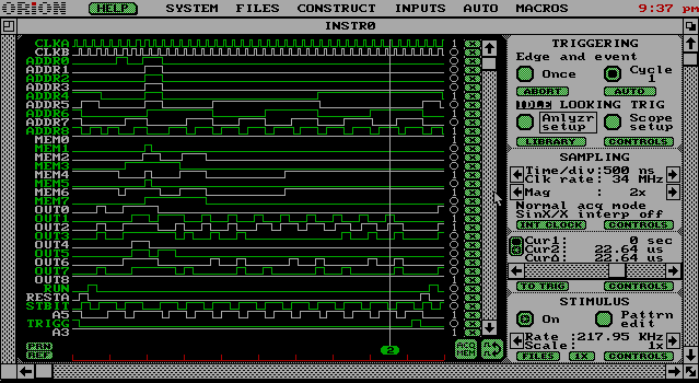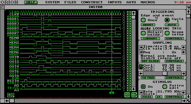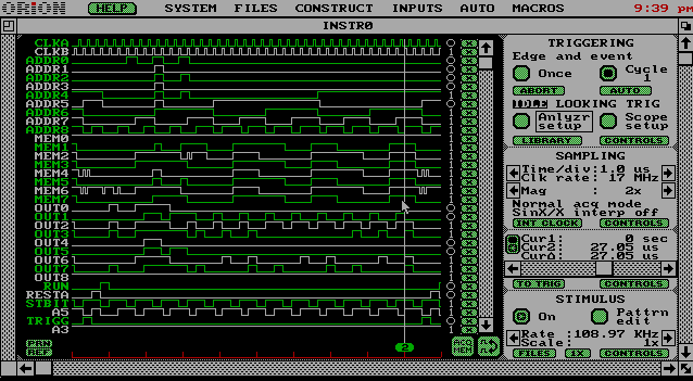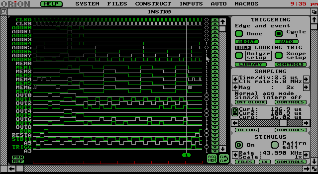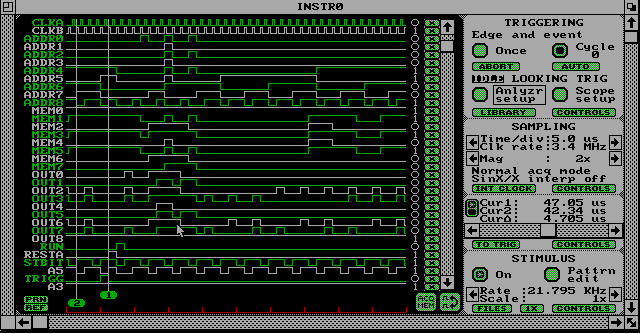 to interface with the memory. So our final set-up consisted of hooking up the stimulus pins to our chips and analyzing all of our pins from our chip to see if it functioned correctly.